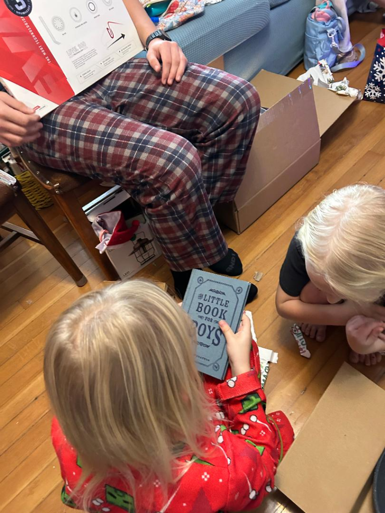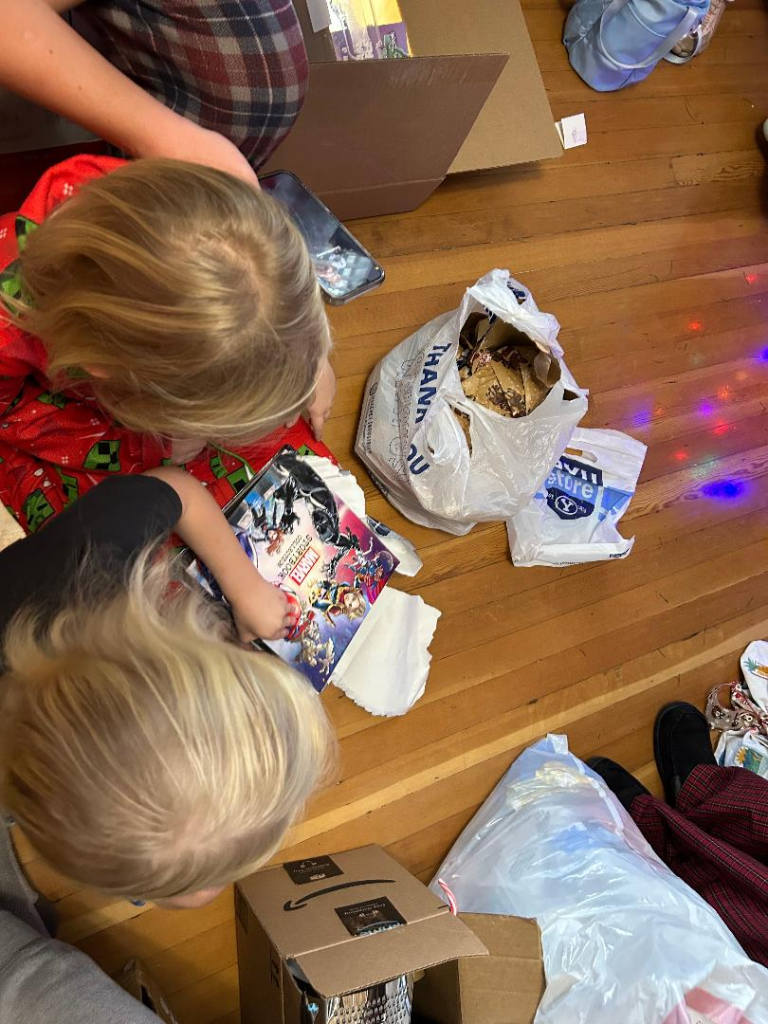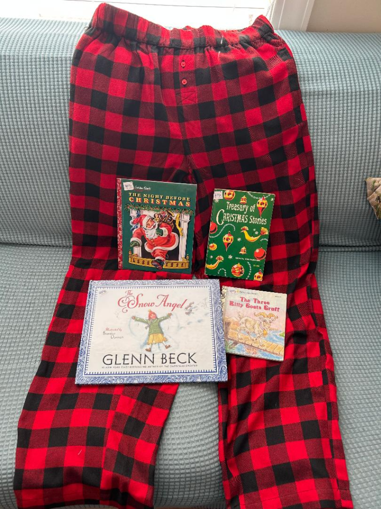 I finished the one above after finding it when thrifting in 2024. I learned that the seven traditions listed are to be done as part of Advent, but not every day the week before Christmas, but starting the Sunday, before Thanksgiving so that you do one a Sunday and then one on Christmas Eve and Christmas Day. I didn’t plan ahead well enough with this because I finished reading this so close to Christmas. So I adapted this book to go through all of it in an hour for our family Christmas Eve program. We talked about each Nativity figure, what it symbolizes according to Emily, read the scripture, sang the song, and discussed the discussion question. It was lovely!