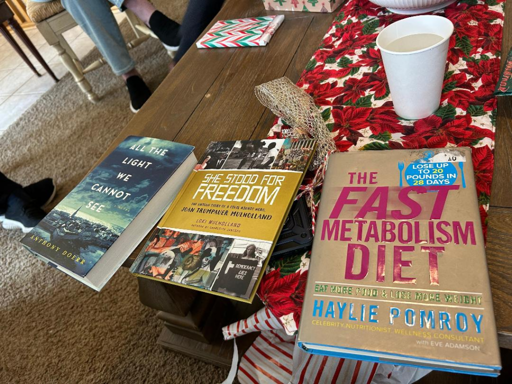 The book above I started in December and finished in January. It is so, so good!!!! The author starts the story with a Christmas vacation to Africa so in that sense it’s Christmas-y. If you want a book to inspire you about what one woman can do, especially fulfilling her pursuit of God’s will, read Kisses from Katie! It is all true and so amazing!!!