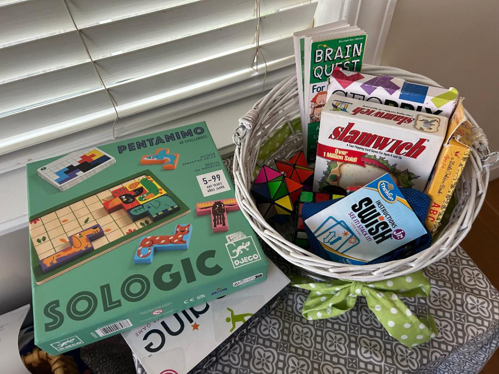 Here’s what the basket looked like with the grandsons’ gifts on Christmas morning.