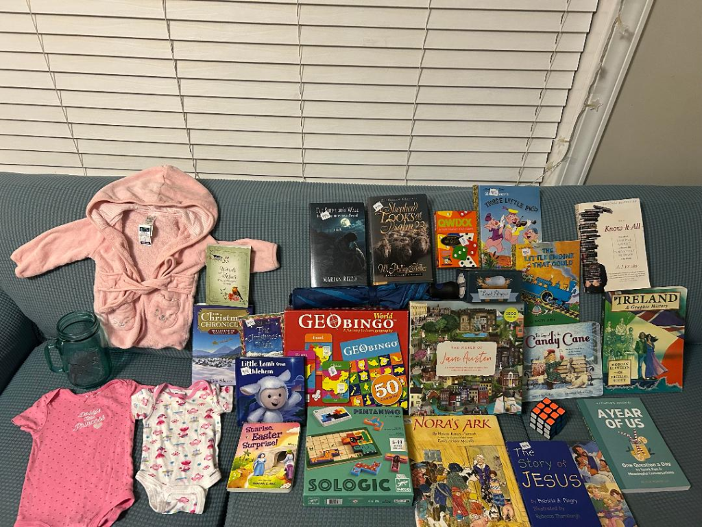 One of the sweetest things I got that day was a praise/compliment from my married daughter, as we ate our Christmas Day brunch after the gifts were unwrapped. She said, “You’ve done it again Mom! Thanks for orchestrating a great Christmas!” Dear, appreciative words spoken from one mother to another. Last year, after Christmas, I decided I wanted to thrift through the year to find Christmas gifts that fit my people’s personalities.