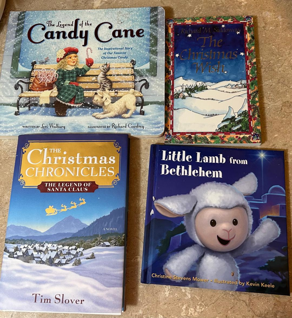 -Christmas chapter books I’ll save to give next year to friends and family, including my “ministeree sisters” for my church congregation. (The women in my ward/congregation whom I am assigned to watch over as a ministering sister. So not my ministering sisters, as those are the ones assigned to me, but the ones I’m assigned to. I wish there was a quicker way to say that. “Ministeree sister” is the best thing I can come up with.)