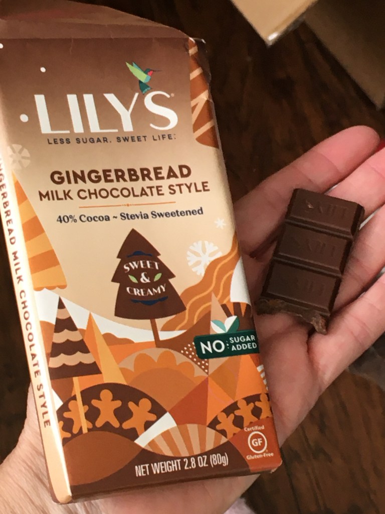 Here’s one of the goodies I bought on Christmas Eve, for my own stocking, in keeping with my low-carb diet. I’ve heard a lot about Lily’s stevia-sweetened chocolate. It’s definitely yummy but expensive too so I haven’t ever bought it before. Next year, I am going to for sure have my husband stuff my stocking and I’m going to stuff my husband’s. After 29 years I’m tired of not being surprised at all. :-). I heard about this idea from my friend Mindy and thought, “Why haven’t I thought of that sooner?”