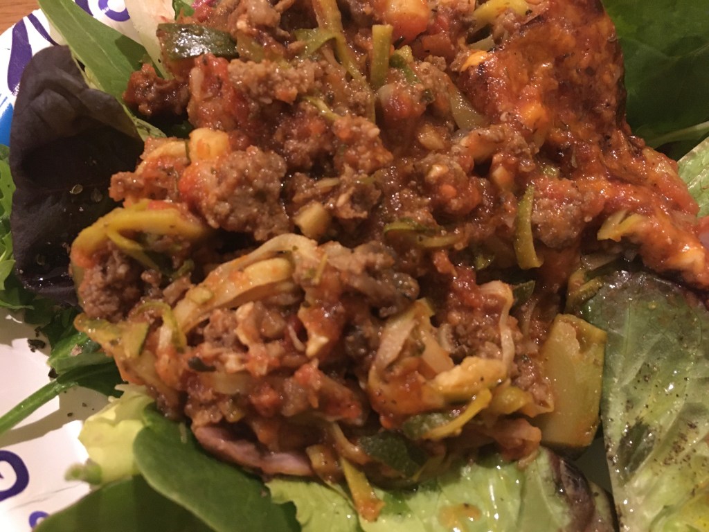 On to the recipe…if you don’t want to bake it, then just serve the meat and sauce (thinned with water to desired consistency) over the zucchini noodles without baking like regular spaghetti.