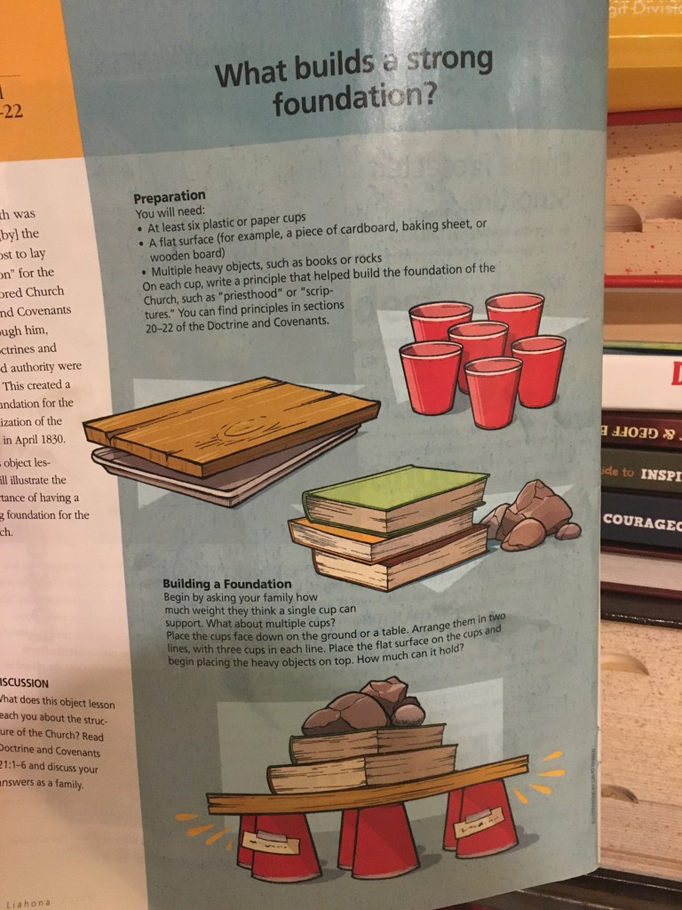 I love it when I remember to do this! This past week, I remembered to use the Come Follow Me section of the Liahona, the magazine for adults of The Church of Jesus Christ of Latter-day Saints, for our Family Home Evening. This section always has object lessons to go with the Come, Follow Me readings of the Doctrine and Covenants of the Church.