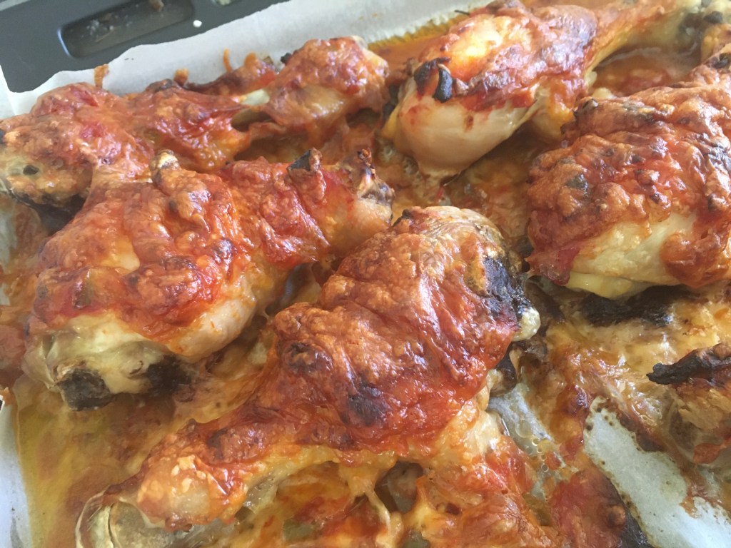 Grate a bunch of cheese. More if you have a lot of drumsticks, like 3-4 cups. Less if you have 5-6 drumsticks.