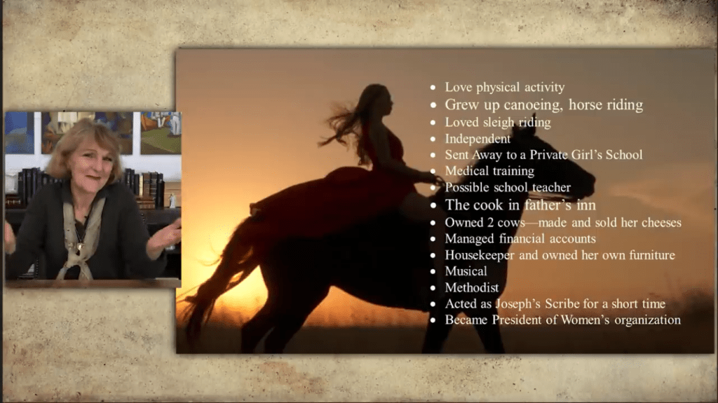 I really loved all the talk last week about Emma Smith in all the gospel videos I watched. The above photo is a screenshot from a YouTube video that my husband’s cousin Lynne Hilton Wilson did. Just go to YouTube and do a search for “lynne hilton wilson” and watch the one for D&C 23-26. That’s the one Lynne did about Emma.