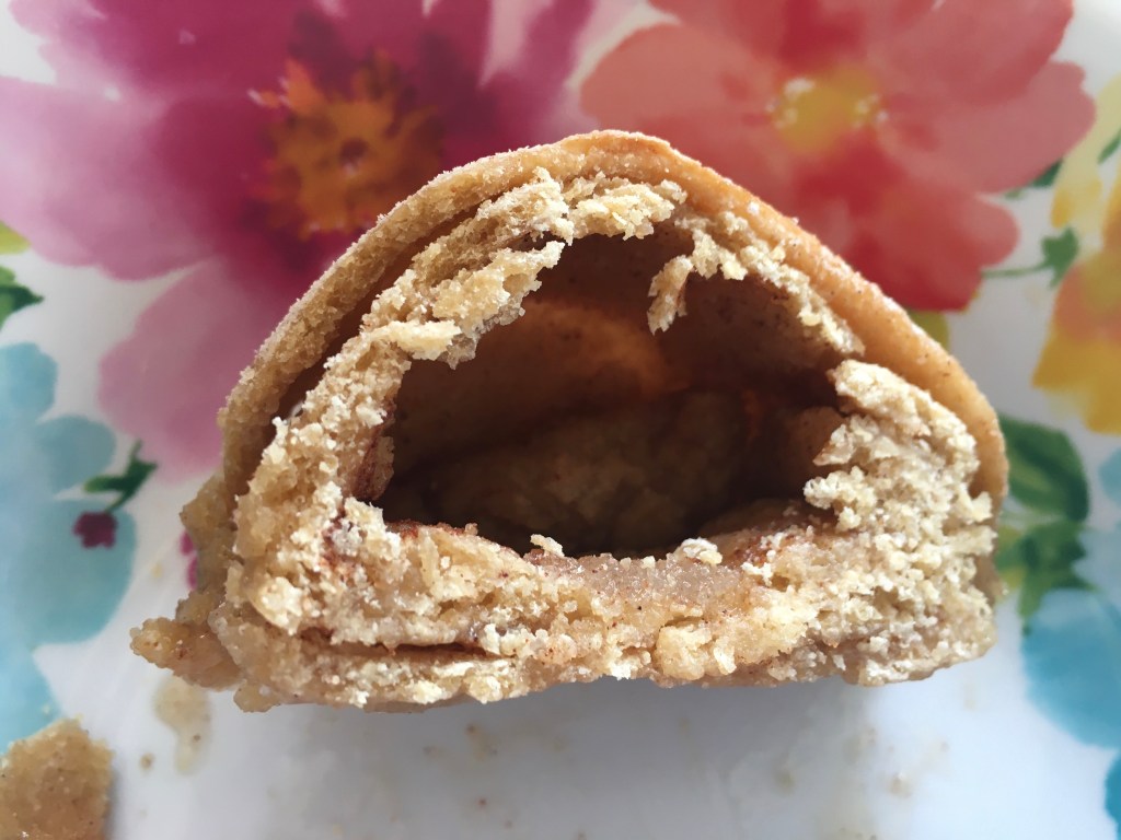 Here’s the recipe: just go over here and use my natural yeast breadmachine bread recipe. Use the dough setting and let it rise at least 6 hours. Set out some butter to soften at room temperature, if you don’t have it out already. Then divide the dough into two halves. Roll out each half into a big circle until it’s about 1/4 inch thick, or thinner if you like a thinner doughed-roll. Spread butter with a butter knife onto the circle of dough to the edge. Fill up a little bowl with equal parts cinnamon and sucanat or coconut sugar. Then sprinkle the cinnamon sugar mixture over the butter. Preheat oven to 350 degrees. Cut each circle into 8 triangle pieces, as if you were cutting a pizza. Take marshmallow and roll it in the cinnamon sugar mixture. Put the marshmallow on the wide end and roll up. Place your rolled up rolls onto a parchment lined cookie sheet. Roll up all the rolls and then bake for at least 30 minutes or until golden brown. Eat warm if you like the taste of warm cinnamon-y sugary, yeasted rolls. I do! Or wait until cool. Add frosting made out of cream cheese and sugar thinned with water to desired consistency if you prefer. The marshmallows will have melted and will leave an empty space inside the roll.