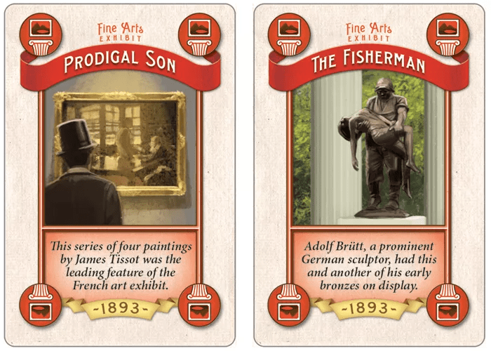 World’s Fair 1893 is a game for history lovers. It’s based on the real World’s Fair that happened in Chicago in 1893. I love that it involves real people, real art, and inventions. It’s basically a set collection game with a mechanism of worker placement in order to collect the sets. The exhibit cards have pictures of real exhibits from the fair with interesting descriptions. Then the influencer cards tell you about real people from history involved with the fair, like Ida B. Wells and Tesla.