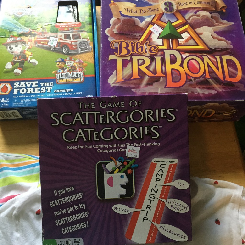 More games! I found the Bible TriBond for some game night friends after telling them about it because I already have it. It’s always fun when my friends tell me what they are looking for and then I find it for them. The Paw Patrol game is for my toddler grandson for him to play with when we play “real” board games, so he feels like he is playing too when he’s at the table with us.