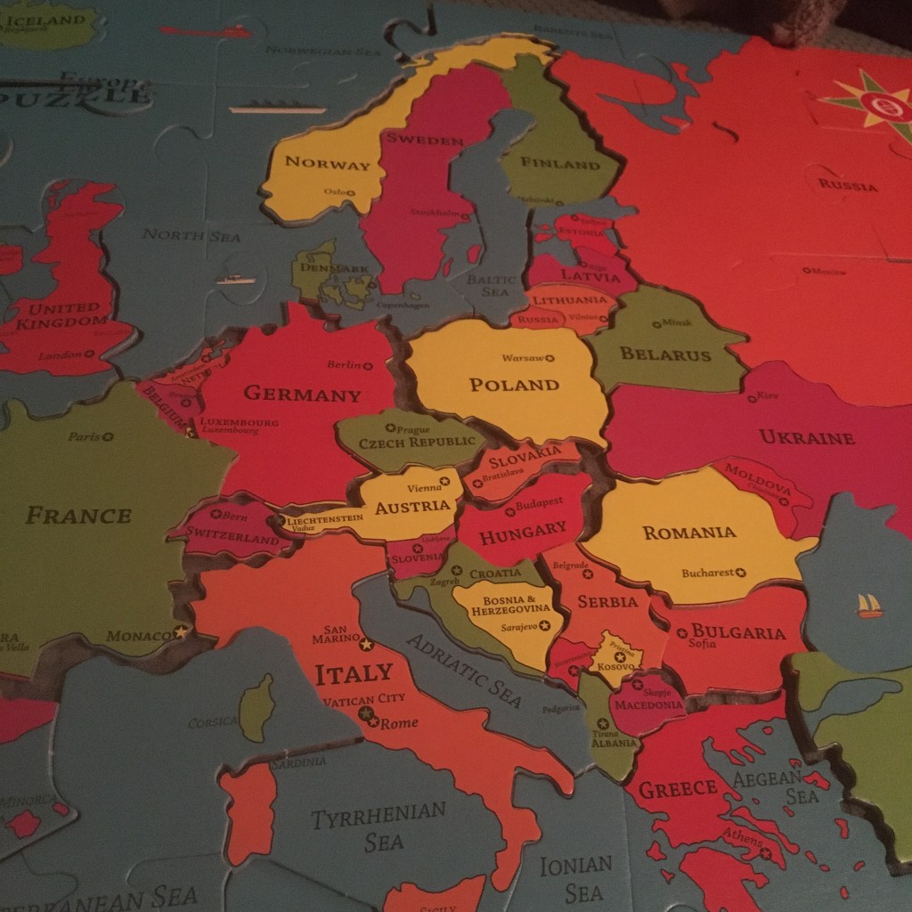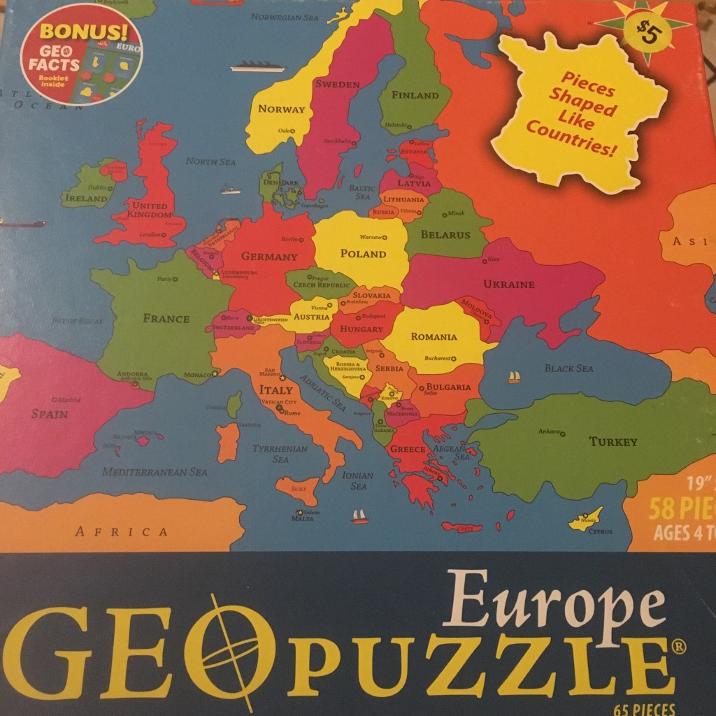 My daughter found this puzzle of Europe and gave it to me. I already have the other puzzles in the GEO Puzzle series that I got at Savers last fall. It’s wonderful to complete the collection!