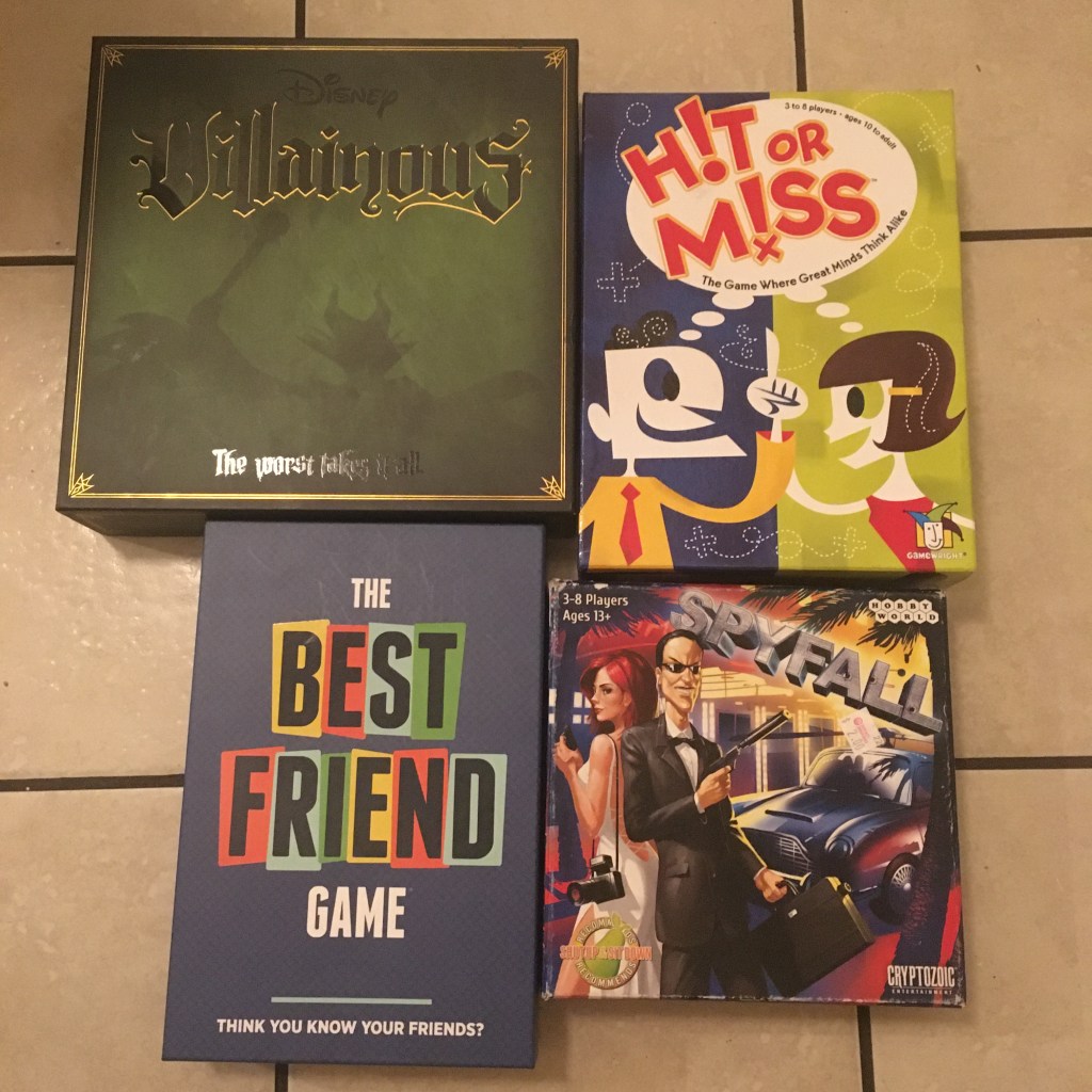 Then I scored with these games! The Villainous game was like new. $6 at Savers. It’s $35 in amazon. It kind of reminds me of The Screwtape Letters, where you get to climb inside the mind of a bad guy/the devil/a villain. You get to see the logic they would use to achieve goals, so you know how to fight back. We played it as a family at our last family game marathon, the day before my oldest went back to TX. (We also played Stella and Scythe.) I was thrilled that I finally won! (We had borrowed the game from our public library to try it out, and I had lost three times to my 12 year old in the previous month.) The Best Friend Game is like The Newlywed Game, only for friends. I’m really excited about that one, I can’t wait to play it with my girlfriends. Spyfall is a great party game. I found it for only $2 at the Layton Deseret Industries. Hit or Miss is like Scattergories with a twist.