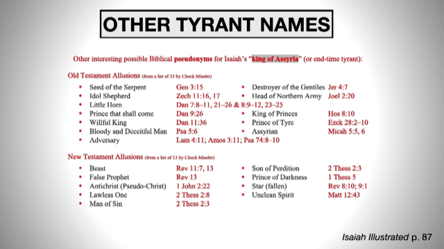 It helps to understand that the Bible uses symbolic names for Jesus. See above. Isaiah follows this symbolic pattern and uses symbolic names for a tyrant and a servant. See below. The tyrant is the bad guy and the servant is the good guy.