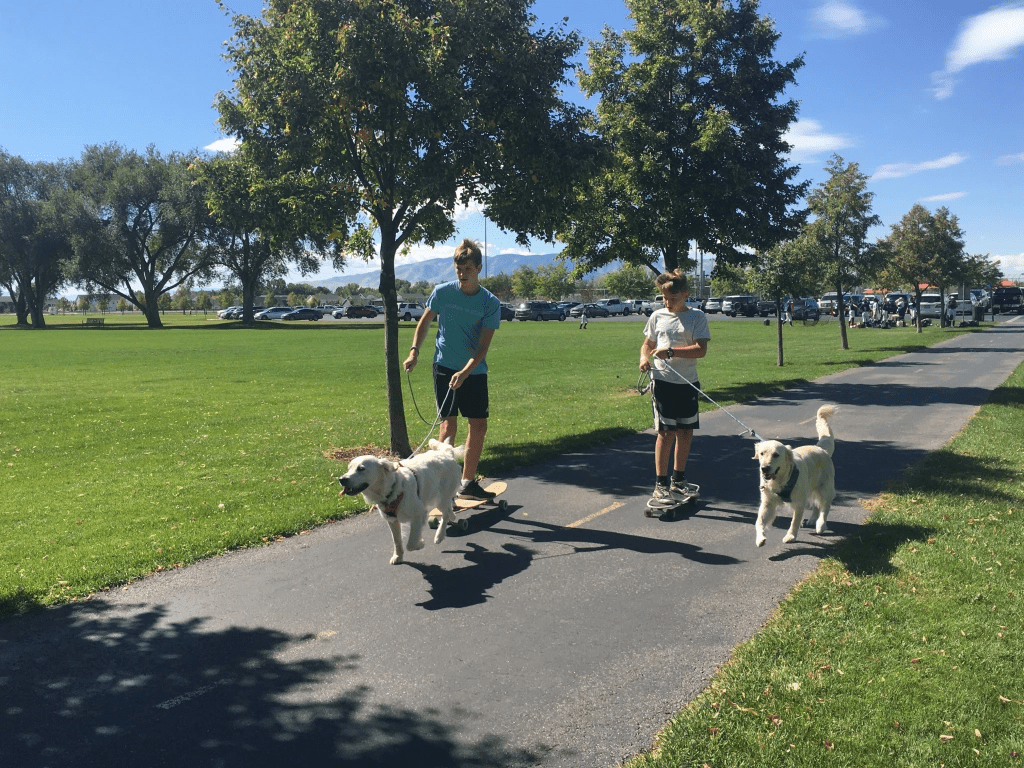It is wonderful to have the brunch during the AM session, then go outside between the two sessions. We went to the park with my sis-in-law’s dogs during the break. The boys got to go “dog surfing” with the dogs pulling the boys on skateboards. So fun! I loved seeing the dogs so happy, running around so joyfully. See photo below. That dog in the foreground shows the picture of pure happiness.