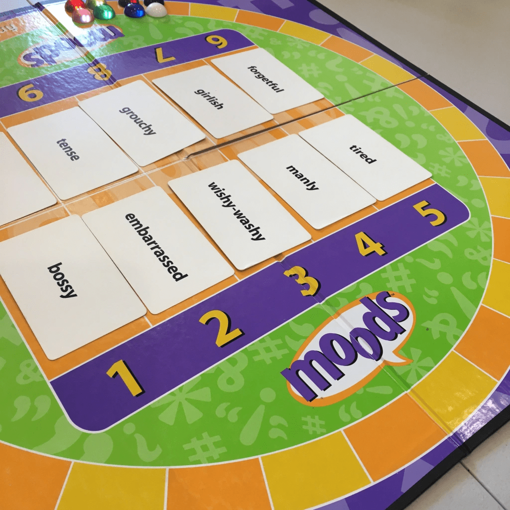 Next we have Moods, one of my new favorites. Go here to read the story behind how I got it. If you play with people who are willing to let go of their self-consciousness and practice their acting skills, you will have some laugh out loud moments. If you play with people who don’t want to act, don’t bother with the game, move on to something else.
