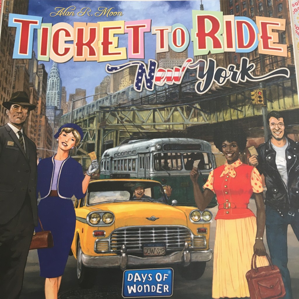 On days when my son wants to get our “game a day” session over with quickly, because he “has so much stuff to do,” he will grab the above game. It has the same mechanics of the original Ticket to Ride, but uses taxi cars instead of train cars and goes A LOT quicker. He always beats me! I hate the rule that when someone has only two taxi cars left, then each player gets only one more turn. So last time I convinced him to drop the rule. I wanted to finish my last route and needed two more turns, not one. Yep, I totally believe that one can negotiate rules and change them if everyone playing agrees.