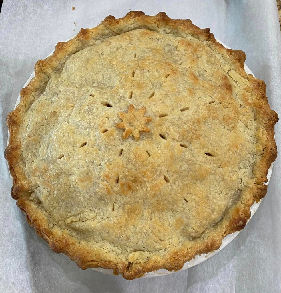 The top photo shows her sugar cookies before baking. This photo below features her apple pie recipe.