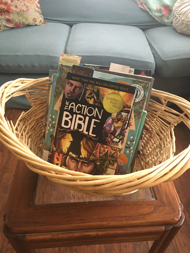 -a chapter from the Action Bible, with narration provided by the Audible version. I already had the Audible version from years ago, then I discovered a hard copy at the thrift store last summer. Yess!!!