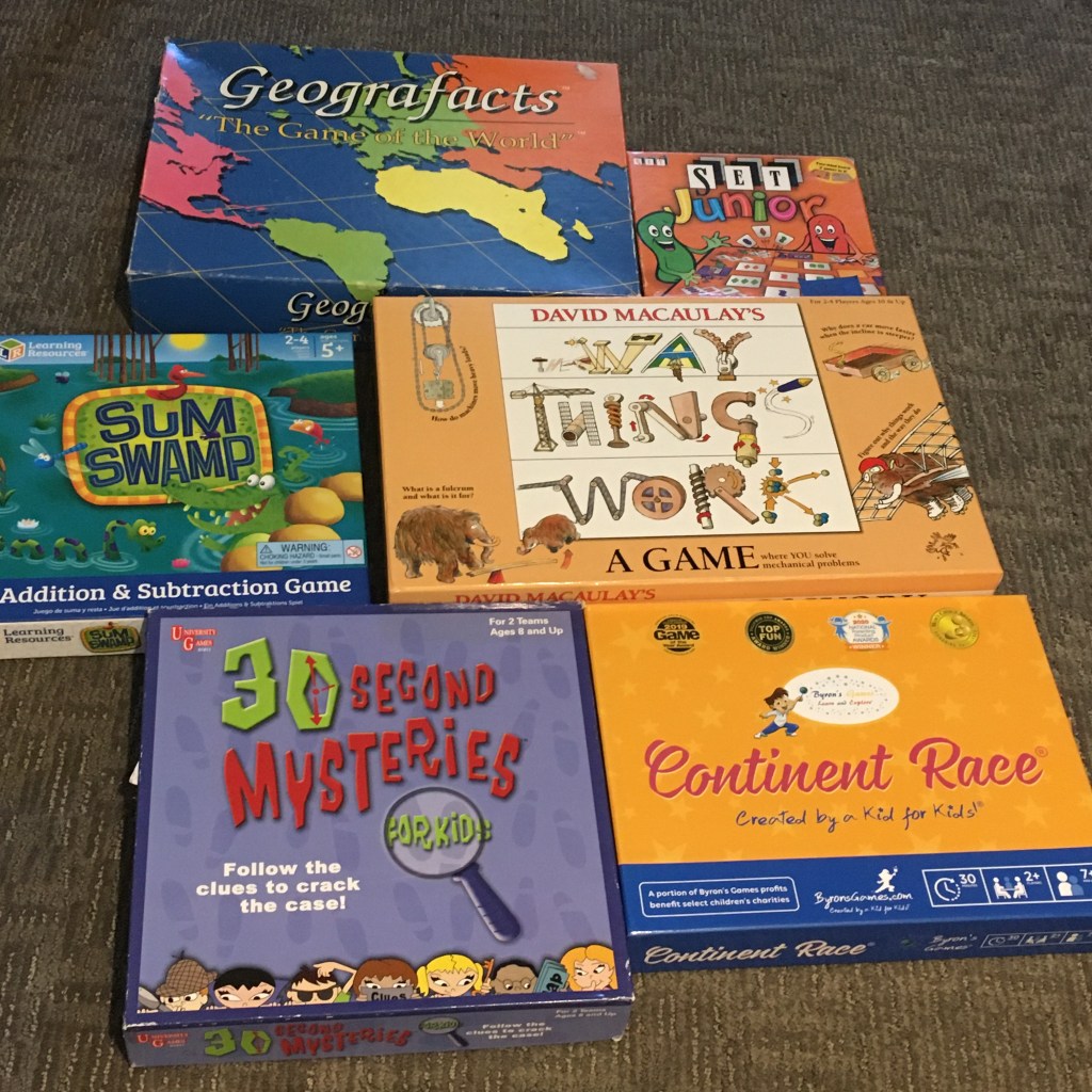 I am a sucker for getting books and games involving maps, so I got the On Assignment National Geographic game for gameschooling. I also love TriBond. I also love finding jr. versions of many board games, (see Backseat Drawing Jr. at the top of the post) hence I was happy to find TriBond for Kids. The TriBond for Kids deck of cards I will probably keep by the dining room table for mealtime pop quizzes, with my other trivia card decks, and dispense with the game mechanics. I checked Boardgamegeek to see what “Rate It” was rated before I bought it. I’ve made it a rule to only buy games that score at least 6 out of 10 or have a review of approval (either text or video) from Tom Vasel of The Dice Tower. In the video below he says that he likes the game, so I got it. It sounds like it will be a fun getting-to-know-you game for when all my family is in town.