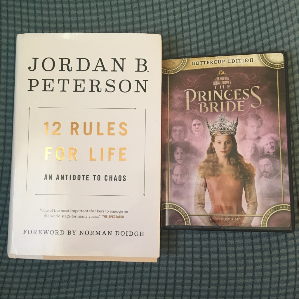 -going thrifting (which I also loooove). This is something I usually do by myself. I think the last time I went thrifting with the hubs was New Year’s Eve of 2009. I’ve been wanting to go thrifting with him for a few months now. We each found one amazing treasure! See below. I have started Jordan Peterson’s book more than once on audio and never finished. One of my sons asked for the hard copy book last Christmas. It was hard to find at an inexpensive price on amazon, separately, not in a bundle, so we I sent my husband to hunt it down at Barnes and Noble for over $20. It was so great to find it at Savers’ for $8 so I can have my own copy. Pricey for a thrift store book but given that it’s even more expensive to buy new I was happy to pay $8. Now my son and I can discuss it! Then there’s the Princess Bride. That one needs no explanation. We’ve watched it a lot but haven’t ever had our own copy.