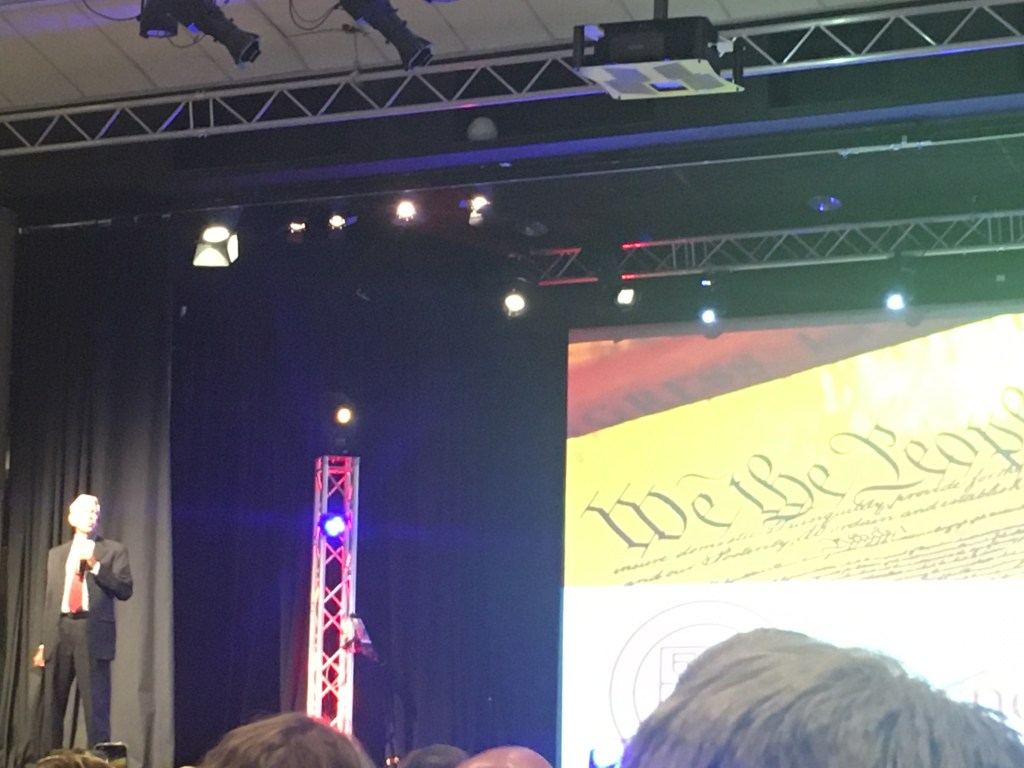 The hubs and I went to see David Barton last Sunday night in Layton. I counted it as date night. David spoke about how the U.S. Constitution was inspired by God. This was to celebrate Constitution Day. As usual, he did an amazing job of presenting evidence for the claim. I’m sorry about the poor photo above, but it’s the best I could get sitting ten rows back from the stage. It will suffice until I can get the better photos from my husband’s phone.