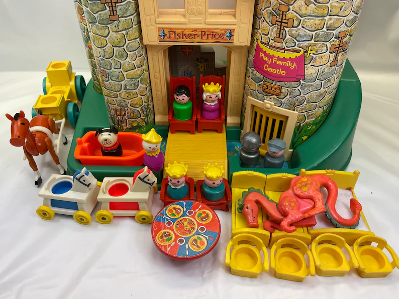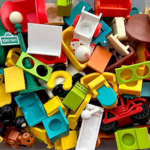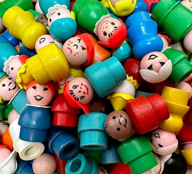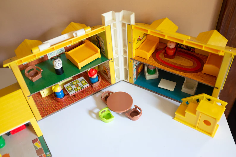 At Uncle Lou’s house, which was behind my grandparents’ home, we, my sisters, cousin, and I, played a lot with Fisher-Price Little People. We had an elaborate ritual preceding the play. Whoever was being the most self-aware at the time would call out “first dibs.” Then the rest of us would call successive dibs. Then we would pile all the people, buildings, furniture, and cars into the middle of the playroom. Then we would take turns picking one thing from the pile, going around and around until every item was claimed.
