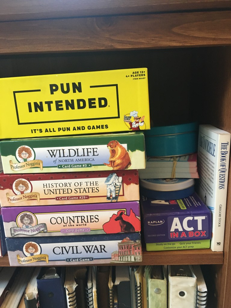 It’s a simple product with potential for great impact for education. The subtitle of the product is “A Daily Introduction to the Classics.” That’s how I strive to use it, as in daily, but I sometimes forget, truth be told, LOL. I keep it at the bookshelf by my dining room table, with this poetry book, and my decks of trivia and other question cards from games, and some of my mealtime games.