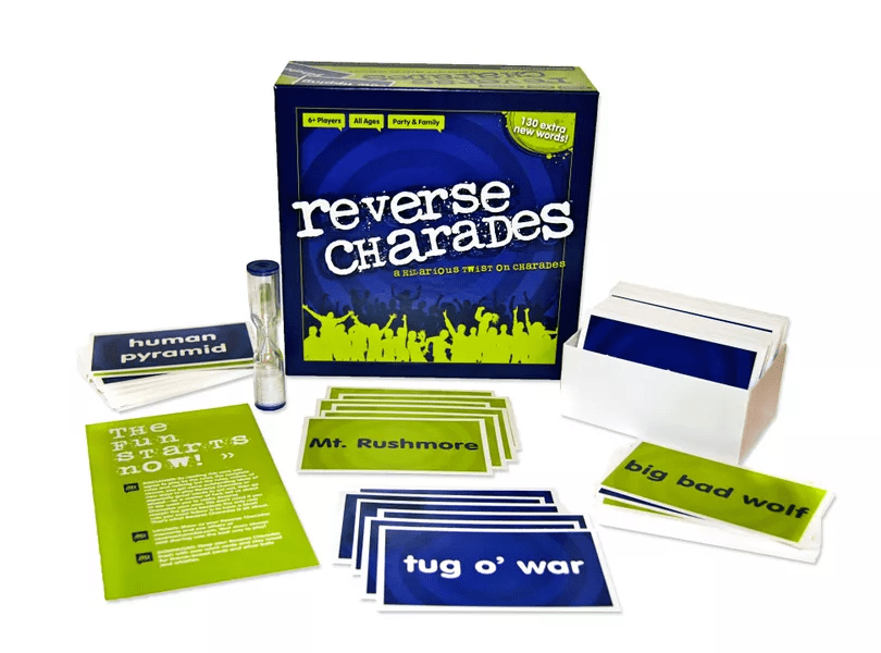 11. Reverse Charades- this one can bring a lot of laughs. Instead of classic charades where one person gives clues to the rest of the group, in this game, a group of people give clues to one person. I love playing this with a big group. I like to play where one person sits on the couch , the others act, and you just rotate who sits on the couch as the guesser. Give the card to the guesser if he/he gets it right, the person with the most cards at the end of the game wins. I often see this one at thrift stores. If you see it there, snatch it up. It’s totally worth the few bucks you’ll spend!