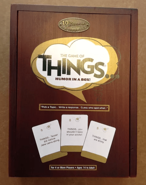 13. The Game of Things. This is basically draw a card with a question prompt, write an answer, then see if you can guess who said what. I like to play this with the conversation starters I got from Jennifer Flanders, linked over here.