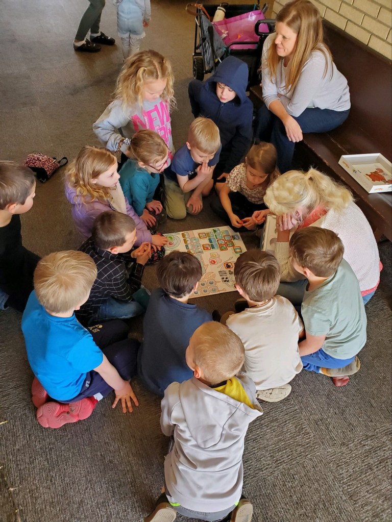 I love using board games for schooling. I use them at home with my own children and at my homeschool co-op, as shown above. In that photo I am using Concept Kids: Animals. That’s one of my favorite games to play with my grandson. You can read my review of it here. Here are some of the games I’ve used for my 6-7-year-olds at my homeschool co-op. Sometimes I use these as gathering activities, and sometimes I use them just for independent play stations. Most of the time that I use board games, I introduce them as a gathering activity so that all the children know how to play them, before unleashing them as a play station. I have found most of these while thrifting.