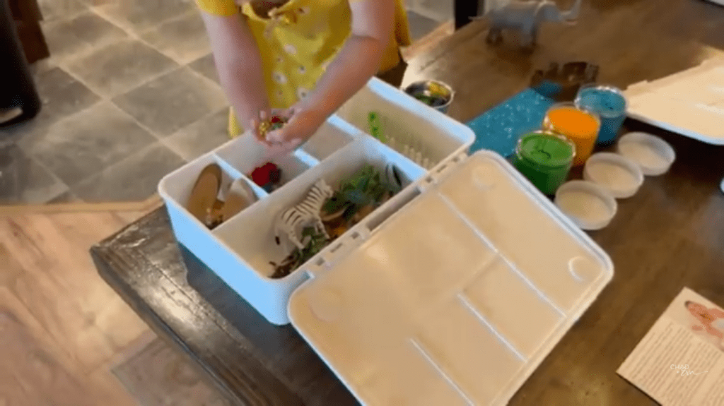 Sensory bins are a great, screen-free way to entertain children. They involve different objects of different textures for children to explore and create different play scenes. Some involve playdough, but if that’s not what you want, you can ditch the playdough and do something else. You can buy them or make them yourself. Here a few DIY videos to get you started. I love the idea of doing themed sensory bins, like construction vehicles or farm animals or babies or bugs, etc.