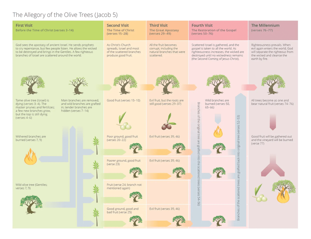 Jacob 5 is all about the Allegory of the Olive Tree, which is all so interesting as a sweeping history/prophecy of the world. You can see a great diagram of it all below. See video above to hear all of his commentary.
