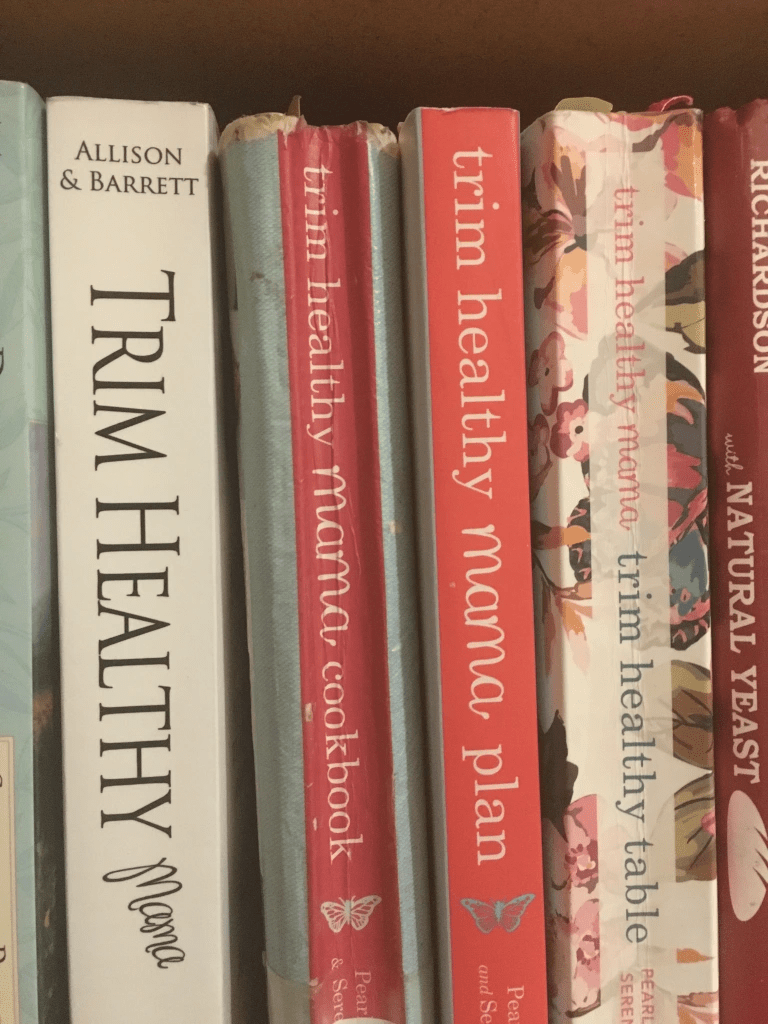 Even though I mostly eat carnivore these days (mostly meat, some Greek yogurt with stevia and pumpkin pie spice, and then all that plus some low carb veggies on the weekend for more variety) I still like to follow Serene Allison and Pearl Barrett of Trim Healthy Mama fame. I have all their cookbooks still, even though the THM diet didn’t work for me to lose weight. You can read about that here. I was excited to find a THM cookbook used at a thrift store last fall for $2 to replace the same version I had at home that was falling apart after much use and water damage. It’s the one pictured below. It’s fun to hear in the video I posted down at the bottom of this post that Serene was actually in labor when they took the photo on the book cover below. I couldn’t even tell she was pregnant!