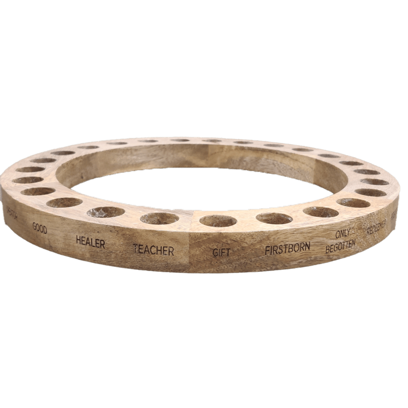 Scented candles. I do have a few scented Christmas candles, but they have all been given to me. I haven’t bought a single one. We do use candles for my Immanuel Wreath, as shown above and below with the the names of Christ, but they are not scented. Since we use this wreath for every Easter and every Christmas, the candles do have to be replaced about every other year. (Read about the Immanuel Wreath advent tradition here.) I love that the Immanuel Wreath activity takes the place of the trinkets involved in a trinket-based Advent Calendar. We light the candle at dinner or at family prayer time before bed, if not everyone was home at dinner, look up the scriptures associated with the name of Christ, and discuss how Jesus shows up in our life with that name. That leads me to the next point.