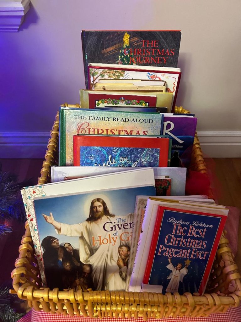 –read aloud often the stories from the above book, Our Family Christmas, by Christie Gardiner. I found this book when thrifting over a year ago and absolutely love it! This is one of my greatest thrifting treasures ever! Only $3 at the Springville D.I.! What a goldmine of resources! I don’t do most of the stuff in it as I just don’t have the energy and my children aren’t little. In other words, I don’t do the crafts or recipes. Maybe I will do them more as the grandchildren get older. I mostly just use it to read aloud the stories at dinnertime and ask the discussion questions. It is an Advent book specifically for members of The Church of Jesus Christ of Latter-day Saints. It also has some sheet music, which I’m thrilled about, for tunes like the lesser known “Silver Bells,” and “Mary Did you Know?” My hope is to coordinate the stories with the names of Christ from my Immanuel Wreath, meaning label each story with the name of Christ from the wreath that best matches up with the story. That way I will read the stories according to the name next in line on the wreath, not in the order given in the book. We’ll see how long this takes…maybe a decade?