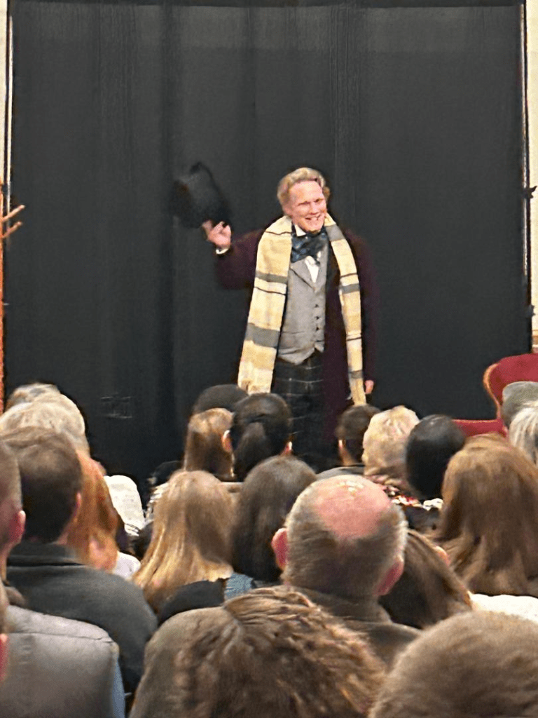 –watched a one-man performance of A Christmas Carol. We attended this at the Provo City Library. The performer was so amazing, he got an almost standing ovation. A few people were sticks in the mud who wouldn’t stand up. He gave so much emotion into the performance. I also loved the carolers dressed up in Victorian/Dickensian garb who did the pre-show in the hallway as we entered the venue. I want to join them in one of those fun hats and dresses! So delightful! I love that the performer, Bryan Johnson, asked that we donate money to the Utah Food Bank via Venmo in lieu of paying for the performance.