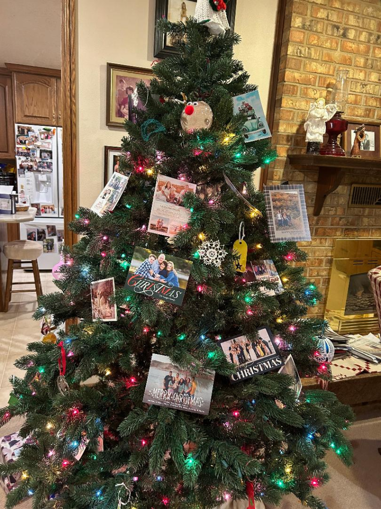–like my mom, decorate tree with just family and friend photos. What a fun idea! She’s done this for a few years now. It certainly makes decorating (and undecorating) a tree super easy.