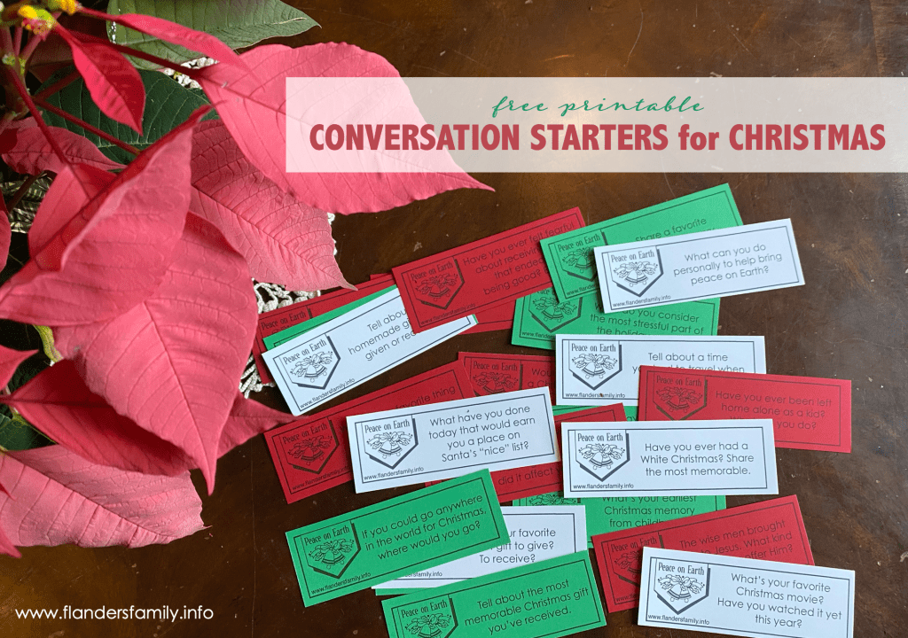 –used Christmas conversation starters on Christmas Eve. I use these from Jennifer Flanders over here. I put them in a little basket and passed them around during our Bethlehem Supper. It keeps the conversation focused on Christmas and reveals insights into each of us we wouldn’t otherwise see. It was fun to hear my dad talk about Christmases when he was a boy and being able to ride in a sleigh.