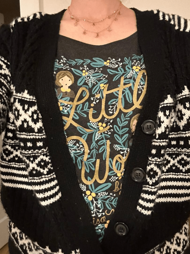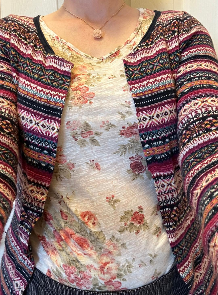 When I last blogged about sweaters, I promised I’d share more photos. So here they are. It’s overcast days like today that I’m grateful for cozy cardigans and pullovers. I prefer cardigans, but as you can see from the top and bottom photo today, I’ve found some cute pullover sweaters I like.