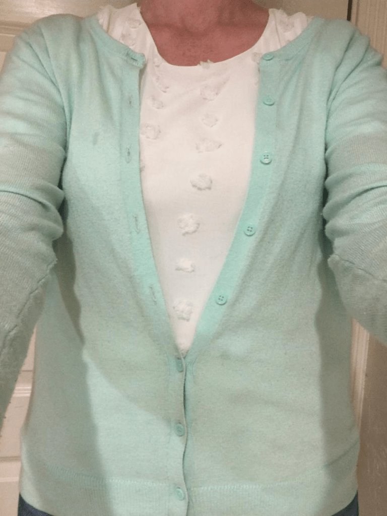 5. Only buy sweaters that you know already go with at least one pair of paints and/or top you already have, if it’s a cardigan.