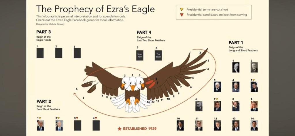 Since the presidential inauguration of Trump happened on 20 Jan 2025 without a hiccup, how does that fit in with Ezra’s Eagle prophecy? Ezra’s Eagle prophecy was first brought to light by Michael Rush. You can see my previous posts about it over here. He interpreted it as meaning that Biden, as a “short feather” would not have a second term as president. We have seen this come to pass. He also said that Trump would be a “short feather” and not have a second term and “appear no more.” Trump, however, has been elected and inaugurated for his second term, so is the prophecy still true?