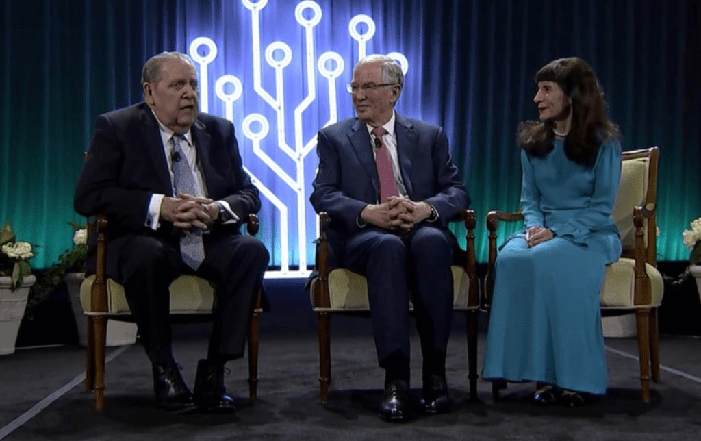The Piano Guys, Jon Schmidt and Steven Sharp Nelson, performed before we heard from Elders Holland and Andersen and Sister Andersen. Their music was so beautiful as always. They also shared a few family memories. I so loved that Brother Nelson showed the power of family stories in parenting. He said that with his children bedtime is often a battle. The difference between bedtime being a battle or bonding time is the bedtime stories he tells. He decided to look at his family history stories and tell them as bedtime stories to his children. Then he shared one of these stories, about his ancestor Eliza, who lived in England. Within a few months of each other, both her parents died, so she and her siblings were orphaned. She had to go to work in a button factory to support the family. She was feeling so poor and bereft, walking down the street, wondering where to go or who could help her. She prayed silently to God for help. A kind neighbor, Mary, reached out to her and invited her to church, to a meeting of The Church of Jesus Christ of Latter-day Saints. She found the hope she needed in the message of the restored gospel of Jesus Christ. She got baptized and joined the ward orchestra. Then she found a handsome cello player in the orchestra, and they got married. As a couple, Eliza and her husband moved to Utah. They were walking down the street with just the clothes on their backs, not knowing where to go. The same friend who found Eliza on the streets in England found her again in Salt Lake City. She took them into her home and helped them get started in their new land.