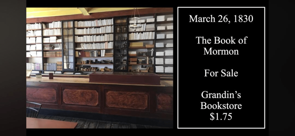 Today the Book of Mormon Another Testament of Jesus Christ went on sale for the first time. The publisher, E.B. Grandin, started selling it at his bookstore for $1.75, in Palmyra, New York. So happy birthday to the Book of Mormon!