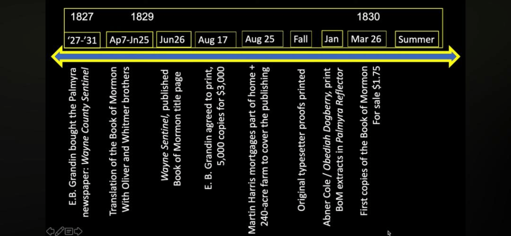 The publication of this book was a huge project! Joseph Smith placed an order for 5000 copies, when the usual order at the Grandin print shop was around 600 copies. It took 12 men working 11 hours a day, 6 days a week, for several months, from the fall of 1829, until March 26 1830, when it first on sale.