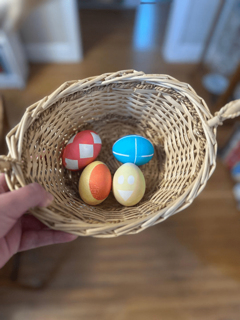 If I’m really ambitious, I’ll create some kind of Christ-centered Easter sensory bin inspired by this video above. Or maybe just make tiny tokens out of sculpey clay that are featured in the DIY Resurrection Eggs here and put them in a bin of colored chickpeas. Or just use the regular tokens that are in those instructions I just linked to. It would be so cool to somehow come up with little tokens that represent the names of Christ, like a light bulb or lamp for “light” but some of those names are too abstract liked “advocate.” Hey maybe my married daughter and I could spend an afternoon making these sensory bins next winter! It would totally be something so fun to look forward to doing in the January doldrums. A girl can always dream right? I could also buy this one on etsy shown below. I’ll only get it out on Easter Sunday to make it extra special.