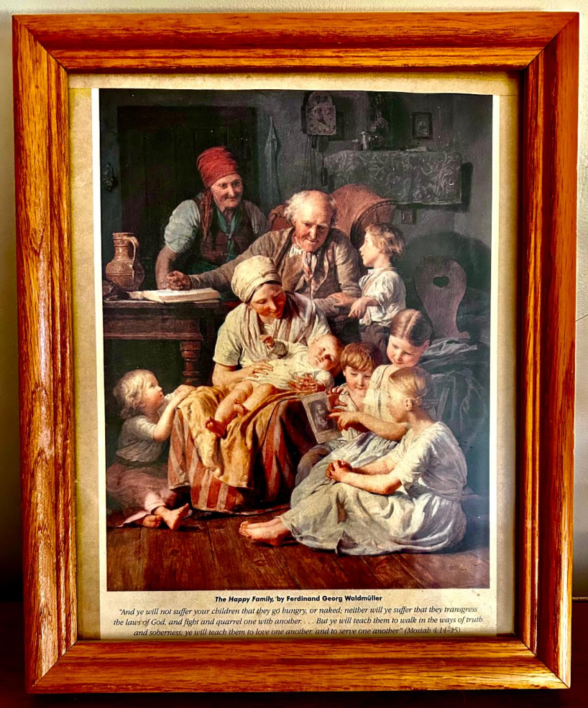 P.S. If you want the image of “The Happy Family” by Ferdinand Waldmuller, it was in the June 2005 Ensign magazine. (Ensign is the name of the magazine for adults before it was changed to Liahona.) You can go here to print a copy. It is just so beautiful! I love it so much, with its meaning of finding joy and peace at home by connecting with your family members.