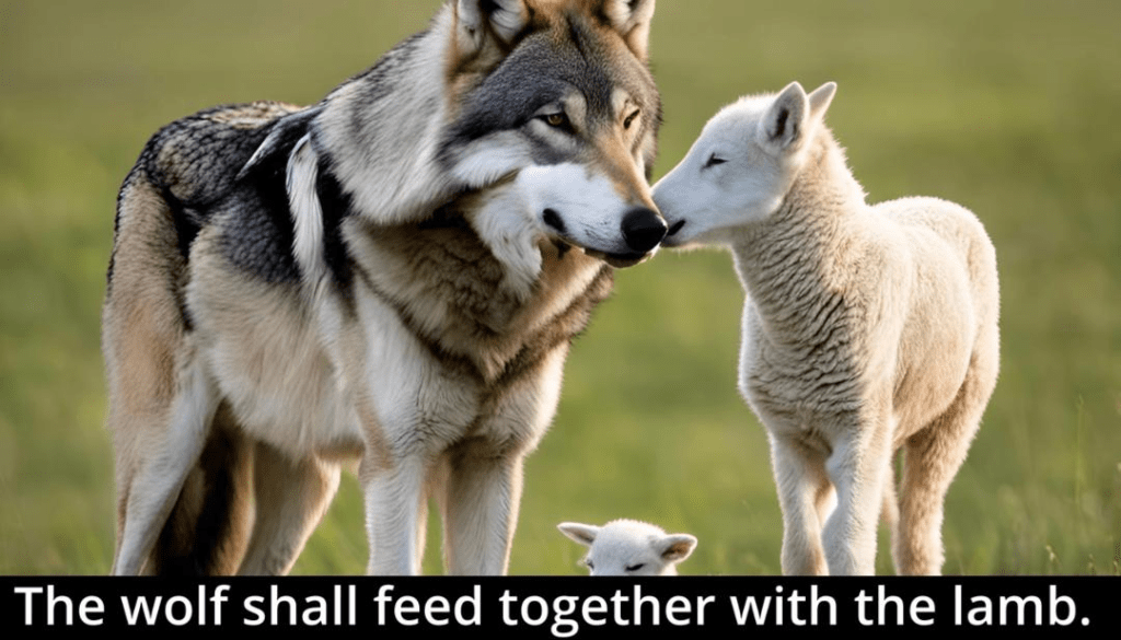 Note: the song doesn’t say “the lamb and the lion” will feed together. The composer learned by studying the scriptures that nowhere in the scriptures does it says the lamb and the lion will lie down together, or do anything together, in the Millennium. The scriptures do, however, talk about the wolf and the lamb. See Isaiah 65:25.