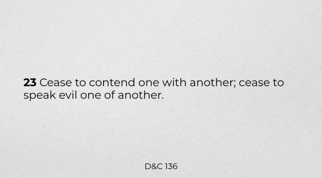 In the video, Connor talks about the scripture, shown at the top, 3 Nephi 11:29, from The Book of Mormon Another Testament of Jesus Christ. Then he gives other examples of scriptures that show contention as a negative thing.