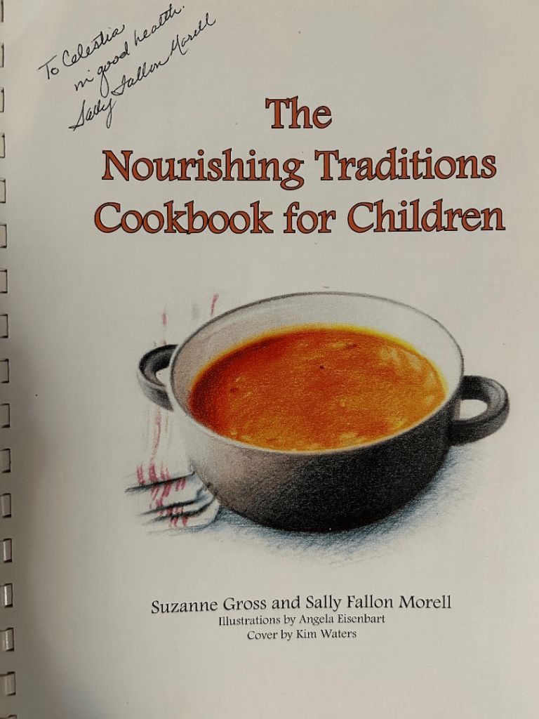 I also gave up drinking soy milk, because of what Sally teaches, completely before I had him whereas with most of the others I drank it occasionally and fed a lot of it to my children. Someone I know was vegan the same time I was in our early mothering years. We both gave up veganism eventually. Even after giving up veganism, however, she continued feeding her family soy milk, even after her last pregnancy. Her baby with that pregnancy has a narrow face and tons of allergies. This is anecdotal and I know I have no way of proving these results as to whether or not diet determined them. Yet I believe it’s all connected to diet. So I’m grateful to Sally Fallon. She saved my health and my children’s health. So, dear children of mine, you can thank Sally that in my later mothering years you all got to eat meat, butter, and cheese, and no more tofu or fake milk! They were starving for meat snd cheese and would sneak them at family gatherings, until I fully embraced WAPF principles and started buying animal products and serving them.