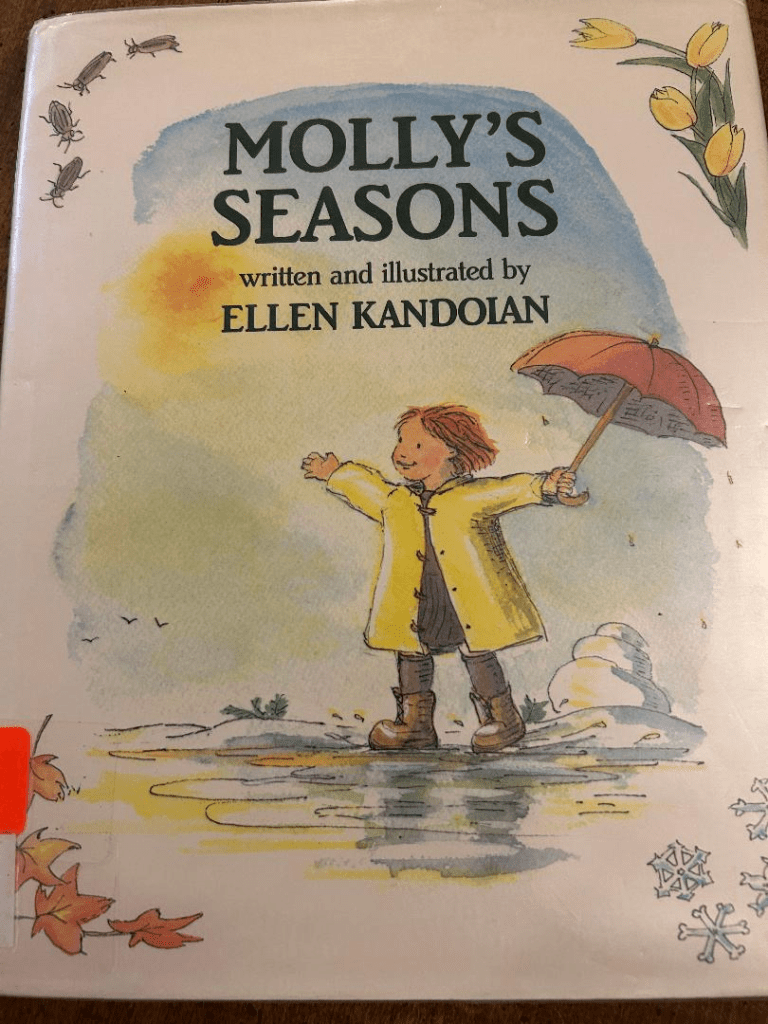 -getting book recommendations from Em. We could chat about books all day! As a professional book illustrator and former employee of Books of Wonder, the NYC store that the Meg Ryan movie You’ve Got Mail is based on, she knows a lot about children’s books. Above and below are some books from her shelf, public library discards that are gems for her.