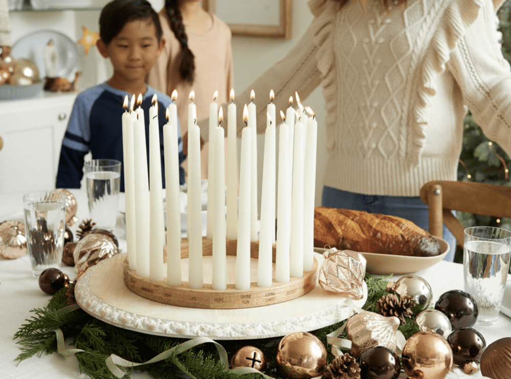 First, I’ll be reading from these two advent books above and below. We do the Our Family Christmas as a family at dinnertime, after we do the name of Christ for the day/lighting the Immanuel Advent Wreath. (Go here to read about the Immanuel Wreath.)